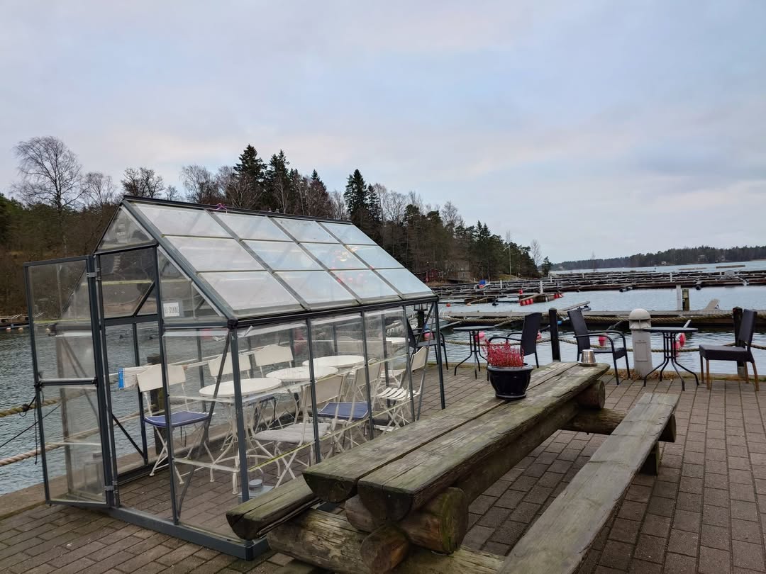 Вот это теплица, стали ставить на море зимой, от ветра, а что, удобно, сидишь в тепле, любуещься на море и "кофе" пьешь