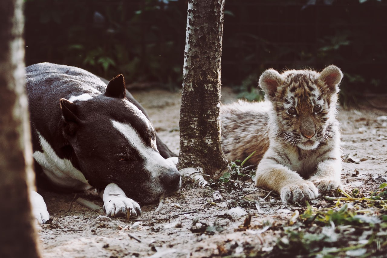 Я за ним наблюдала в течении 6 лет, классный пёс, бессменный воспитатель тигров.